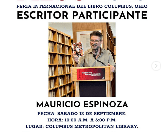 El próximo sábado 13 de septiembre de 2025, el poeta, traductor e investigador Mauricio Espinoza participará como escritor invitado en la Feria Internacional del Libro de Columbus (FILCO), uno de los encuentros más importantes de la literatura en español en el medio oeste de Estados Unidos.
