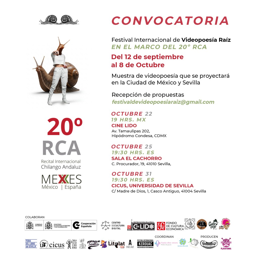 20º Recital Internacional Chilango Andaluz, Festival Internacional de Video poesía Raíz, Cultura Solar MX, convocan.