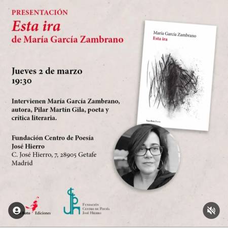 #Presentación de #EstaIra de María G. Zambrano en la Fundación José Hierro