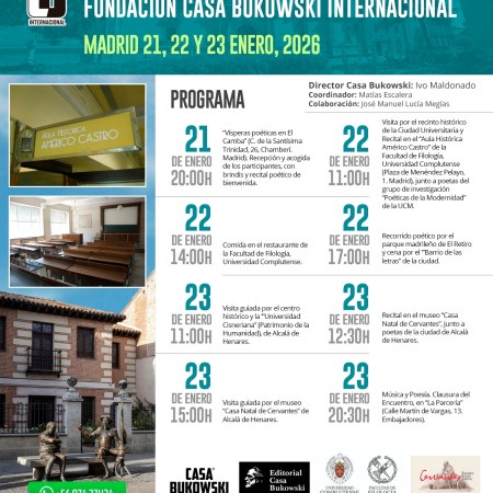 📰 Madrid acoge el Primer Encuentro Panhispánico de Poesía Casa Bukowski (21–23 de enero de 2026)