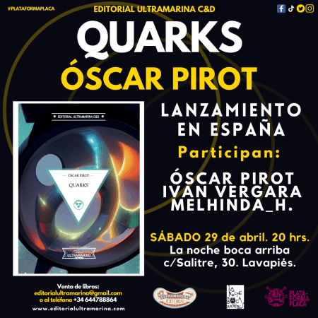 abril 19, 2023 Editorial Ultramarina Cartonera & Digital Presentación – Quarks, de Óscar Pirot, en La noche boca arriba #Madrid #PoesíaMexa