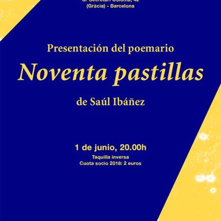 mayo 18, 2018mayo 26, 2018 Editorial Ultramarina Cartonera & Digital Presentación de ‘Noventa pastillas’ de Saúl Ibáñez en Barcelona!